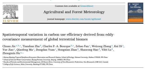 近日,888娱乐城 “生态服务功能监测与评估”团队成员靳川博士联合北京林业大学、新布伦瑞克大学(加拿大)、西北农林科技大学、海南省生态环境监测中心等单位共同合作,在生态碳水循环领域取得一定研究进展,在生态领域著名期刊接连发表多篇学术论文。论文的第一作者为青年教师靳川博士,通讯作者为胡中民教授,第一单位为888集团娱乐官网 。
