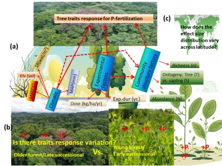 磷素是制约全球森林生产力的主要因素之一,全球范围内磷素添加如何影响树木光合性状及生产力一直未知。为了解决这个问题,888集团娱乐官网
